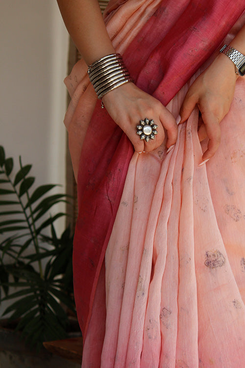 BUNA Eco Printed chanderi Silk Sari