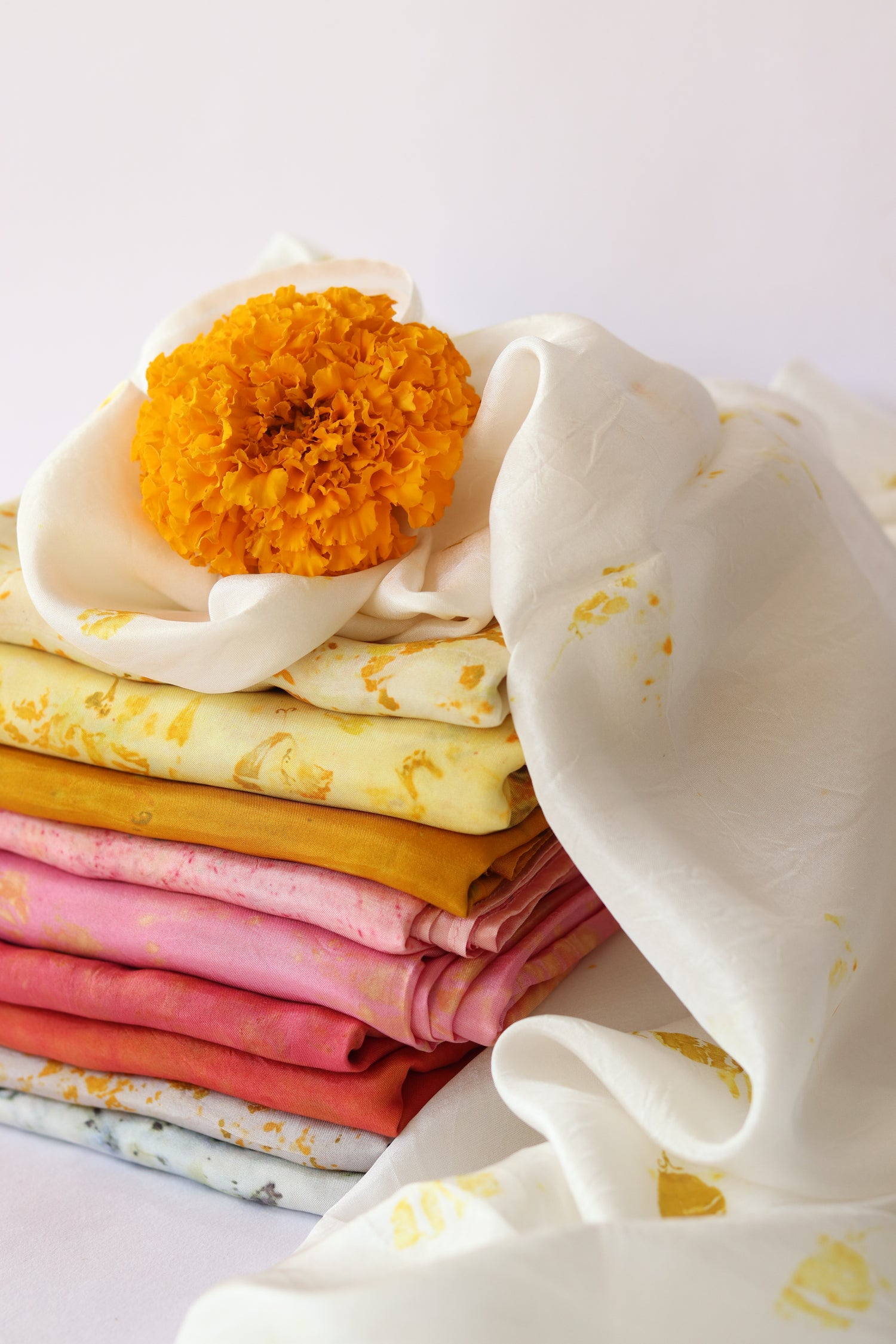 We believe in the power of nature’s palette. Our dyes are sourced from the vibrant hues of flowers, leaves, and barks, with many of these elements collected from local temples. Each petal and leaf carries a story, a memory that we infuse into our textile, ensuring that no two pieces are ever alike. Our eco-printing process is a tribute to the earth, an endeavor to reduce waste and celebrate the beauty of the natural world